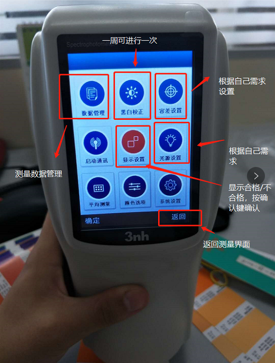 步骤二:将NS800分光测色仪打开后,进行黑白校准(一周可进行校正一次)